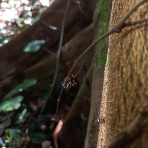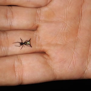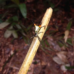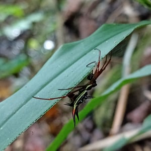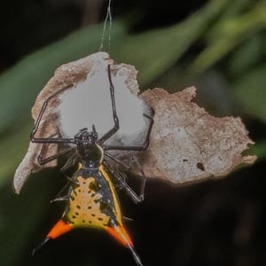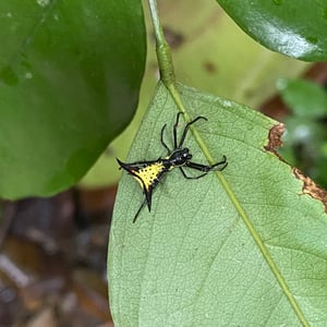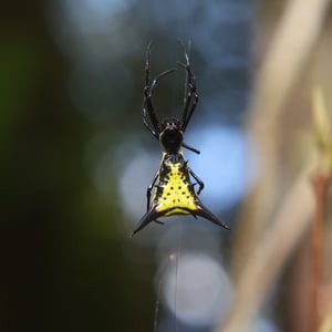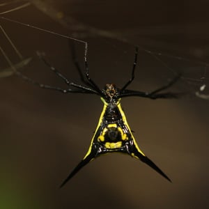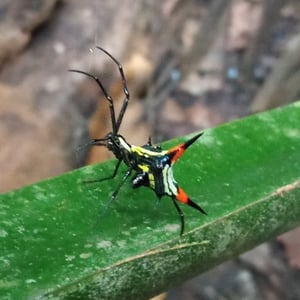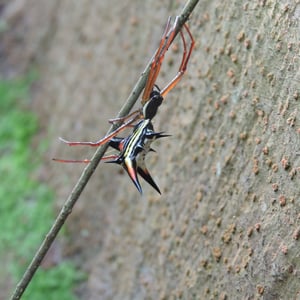 Micrathena schreibersi is a species of orb-weaving spider commonly known as the spiny orb-weaver. It is characterized by its small size, with females measuring around 5-7 mm in length. The spider has a distinct spiky appearance, with spines on its abdomen and legs. It is found in various habitats, including forests and gardens, and constructs intricate orb-shaped webs to catch prey.