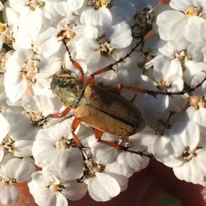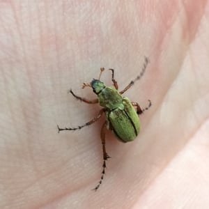The adult beetle feeds on the foliage, flowers, and fruit of many plants including grapes, apples, peaches, chestnuts, roses, and other garden flowers and fruits. On roses it skeletonizes the leaves, which can be rather bothersome for avid gardeners. Rose chafers are also a problem for vineyards as they eat the grapes at bloom as well as skeletonize the leaves. They also tend to appear suddenly and in swarms, and vines with over 100 rose chafers per plant have been observed. This huge amount of damage can result in almost total loss of photosynthetically active leaf area as well as reducing or prohibiting pollination. The larvae also cause damage as they feed on the roots of the plants, which can limit growth. Management Small number of beetles (2-3 per plant) can be mechanically removed (hand picking, hand held vacuum). A number of insecticides are also effective for large scale infestations.