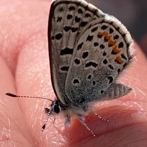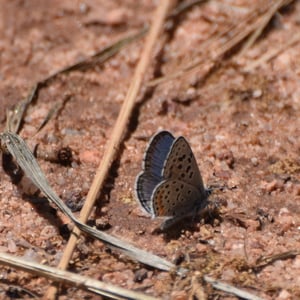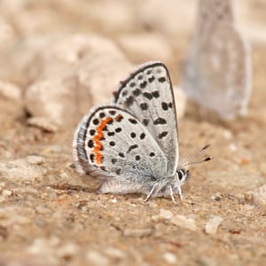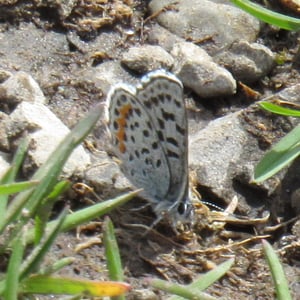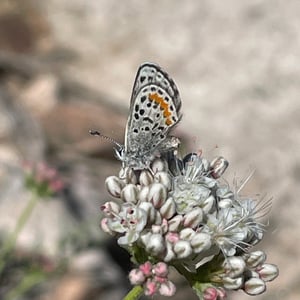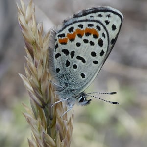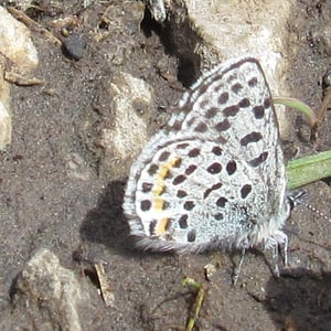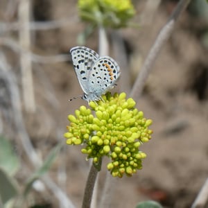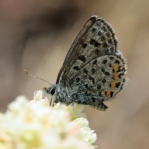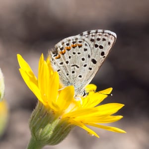 Euphilotes ancilla, the Rocky Mountain dotted blue, is a species of butterfly of the family Lycaenidae. It is found from Washington south to California and southern Alberta and Saskatchewan south through the Rockies and high plains to Wyoming, Colorado, Utah, and northwestern New Mexico. The species was first described by William Barnes and James Halliday McDunnough in 1918. Its wingspan is from 17 to 23 mm. Its habitats include sun-exposed rocky slopes and flats with host plant colonies. Larvae feed on various Eriogonum species, especially sulphur-flower.