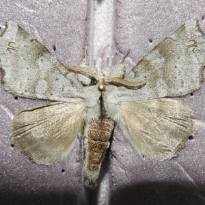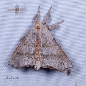 Olceclostera angelica, the angel moth, is a moth in the family Bombycidae. The species was first described by Augustus Radcliffe Grote in 1864. It is found in North America, where it has been recorded from Quebec and Maine to Florida, west to Texas and north to Wisconsin and Ontario. The habitat consists of deciduous forests. The wingspan is 32 –. The forewings are silvery grey with brown lines and shading. The outer margins of both the forewings and hindwings are scalloped. Adults are on wing from May to September. The larvae feed on the leaves of Fraxinus and Syringa species. They have a light silvery-brown body with three dorsal white lines, edged with black. The top of the head is black, bordered by long white hairs.