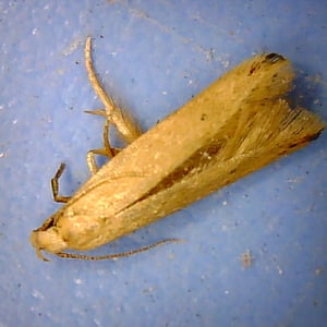 The Angoumois grain moth (Sitotroga cerealella) is a species of the Gelechiidae moth family, commonly referred to as the "rice grain moth". It is most abundant in the temperate or tropical climates of India, China, South Africa, Indonesia, Malaysia, Japan, Egypt and Nigeria, with its location of origin being currently unknown. It is most commonly associated as a pest of field and stored cereal grains as they burrow within the kernel grains of crop plants, rendering them unusable for human consumption. By laying eggs between the grains themselves and hatching at a later time, often during the processing, transportation or storage stages, the moth can be transported to households or countries presently free of Angoumois grain moth infestations. Thus, constant protection against the Angoumois grain moth is required for grain up till the time of consumption.