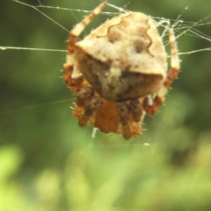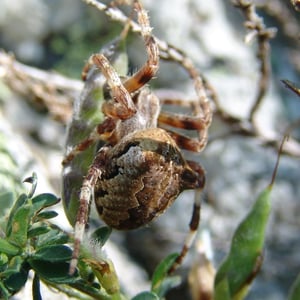 Araneus angulatus closely resembles the more frequently encountered European garden spider, Araneus diadematus, but can be distinguished by the presence of angular tubercles on the abdomen.