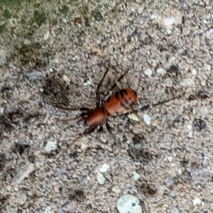 Some species mimic specific groups of ants, while others only have generic body modifications to look more ant-like, such as an elongated body or a carapace pattern that creates the illusion of a third body segment. Some mimic ant behavior as well, waving their front two legs as if they were antennae or bobbing their abdomen to look more ant-like. Certain species found in Texas mimic fire ants to prey on them, while some species use Batesian mimicry, appearing like velvet ants to take advantage of their aposematism in order to deter predators.