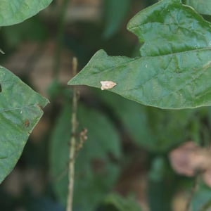 The wingspan is 15–19 mm. In China this species has several generations per year. The larvae feed on various trees, including fruit trees such as mandarin and guava. Recorded food plants include Alternanthera sessilis, Cantharospermum barbatum, Calophyllum inophyllum, Camellia, Carica papaya, Cassia siamea, Citrus, Croton, Derris, Eugenia aquea, Evodia accedens, Desmodium gyroides, Eugenia densiflora, Flacourtia, Glycine max, Jasminum sambac, Lantana, Linum, Mangifera indica, Nephelium lappaceum, Nephelium litchi, Ricinus, Schima noronhae, Sida acuta, Solanum torvum, Theobroma and Vitex negundo. Young larvae spin silk threads and are easily blown by wind to various parts of young leaves and buds. Later, they web several leaves, or leaves and fruit, together to form a nest. The larvae feed on the plant parts enclosed by their nests. Pupation takes place in the last larval nest or between two leaves, where it spins some defensive silken membranes and a thin cocoon around the body. The pupal stage lasts 4–27 days.