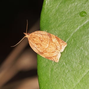 Adoxophyes privatana, the appleleaf-curling moth, is a moth of the family Tortricidae. The species was first described by Francis Walker in 1863. It is native to south-east Asia, where it has been recorded from Taiwan, Hong Kong, Hainan in China, Nepal, India, Sri-Lanka, Thailand, Vietnam, western Malaysia, Singapore, Sumatra, Java, Borneo, the Philippines and the Chagos Archipelago. It is an accidental introduction in Great Britain.