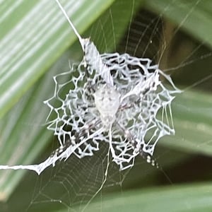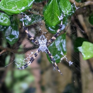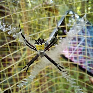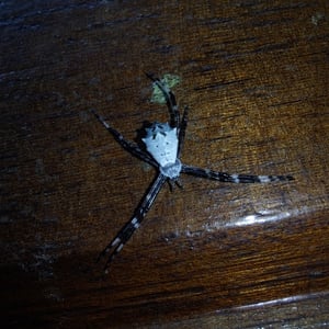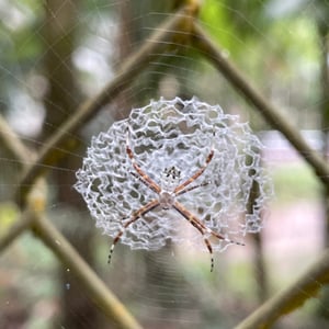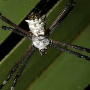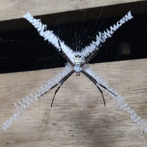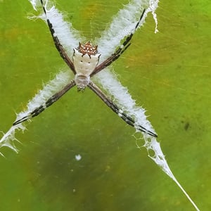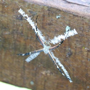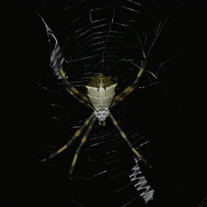 Argiope submaronica is a species of spider in the family Araneidae (orb-weavers), found from Mexico to Bolivia, and in Brazil. The name was at one time considered a synonym of Argiope argentata, but A. submaronica is now treated as a separate species. It has also been known under the synonym Argiope savignyi. It was observed to capture and feed on the proboscis bat Rhynchonycteris naso in Costa Rica, totally encasing the bat in silk during the course of a day. Through an observational study done at the La Selva Biological Station, they saw that the bats are usually caught on the spider’s web and then fully wrapped by the spider’s silk. Afterward, the spider was observed to be near or on the bat as the day went by and manipulation of its parts of the mouth on the bat signified active feeding. This was the first recorded phenomenon of an emballonurid bat being preyed on by an invertebrate, and the first documented proof of Argiope being able to catch and consume a mammal. A. savignyi sometimes spins a silk disc, sometimes a cruciate pattern, and sometimes combines both types. These structures are thought to provide five purposes: protection from predators, advertising to vertebrates to avoid web damage, prey attraction, web stability, and a source of shade. Different designs had different purposes or functions.