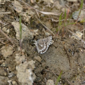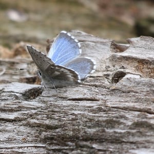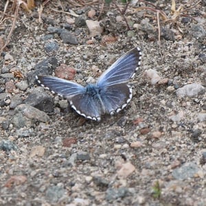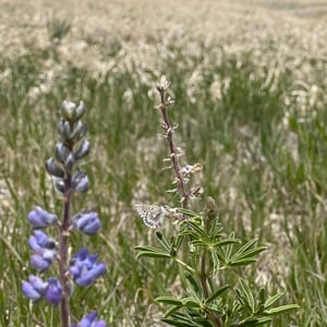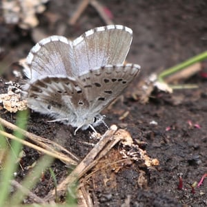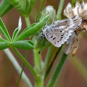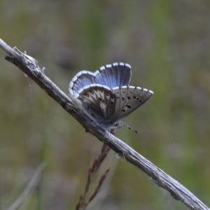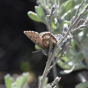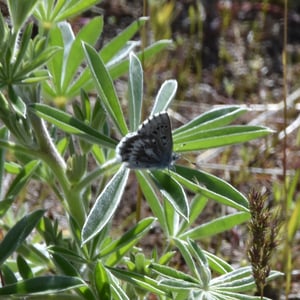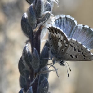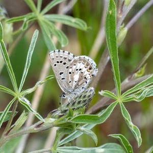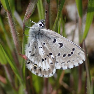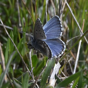 Glaucopsyche piasus, the arrowhead blue, is a western North American butterfly of the family Lycaenidae. It is a locally common butterfly that favors prairie, open woodland, and woodland edges and trails. Larvae feed on lupine (Lupinus) and milkvetch (Astragalus) species.