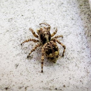 The species, originally found throughout north and west Asia, is an introduced species in North America, first documented there in the 1950s or 1960s. Their success can be attributed to colonizing man-made structures, which provide refuge and camouflage for the mottled brown-and-grey spiders. This species also capitalizes on the artificial lighting found on many buildings, which attracts prey at night, thereby providing these visually-acute spiders with extended foraging opportunities.