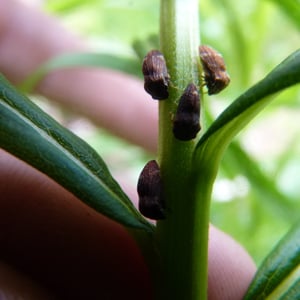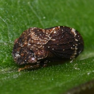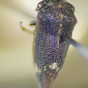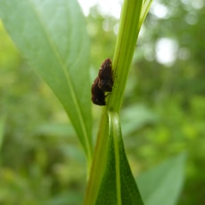 Publilia concava, commonly known as the concave blister beetle, is a species of insect belonging to the family Meloidae. It is characterized by its small size, measuring around 1 cm in length, and its distinct concave shape. The body of Publilia concava is typically black or dark brown, with a shiny appearance. These beetles are found in various regions of North America and are known to feed on the flowers and leaves of plants.