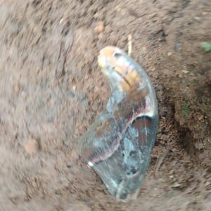 After reaching a length of about 11.5 cm, the caterpillars are ready to pupate. They spin a 7–8 cm long papery cocoon interwoven with desiccated leaves and attach it to a twig using a strand of silk. The adult moths emerge from the cocoon after approximately four weeks depending on environmental factors.