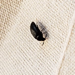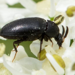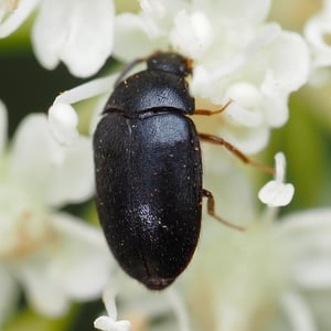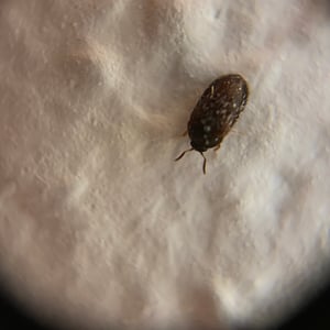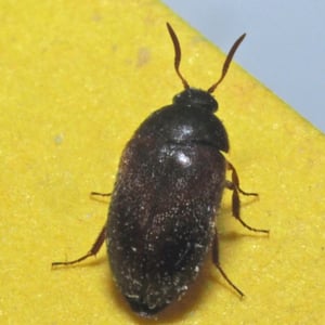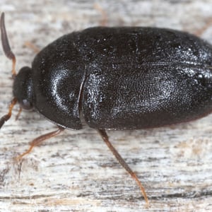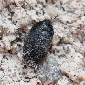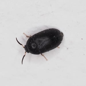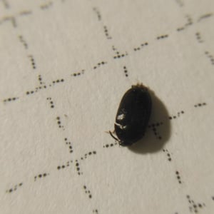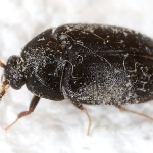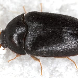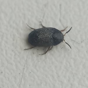 Attagenus schaefferi, commonly known as the black carpet beetle, is a small insect belonging to the family Dermestidae. It is approximately 3-5 mm in length and has a shiny black or dark brown body. The larvae of this species are known to be destructive pests, feeding on a variety of organic materials such as carpets, upholstery, and stored food products. Adult black carpet beetles are typically found outdoors, but can also be found indoors where they may lay eggs and continue their life cycle.