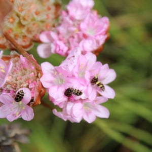 Attagenus trifasciatus, commonly known as the varied carpet beetle, is a small insect belonging to the family Dermestidae. It measures around 2-3 mm in length and has a distinctive pattern of three dark bands across its elytra. These beetles are known for their scavenging behavior, feeding on a variety of organic materials such as wool, fur, feathers, and even dried food products. They can be found in homes, museums, and other places where organic materials are present.