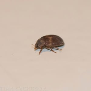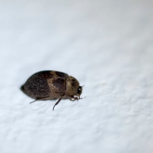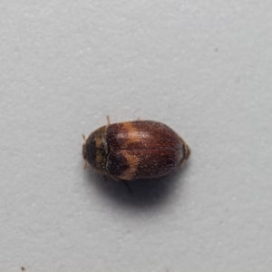 Attagenus woodroffei is a species of beetle commonly known as the Woodroffe's carpet beetle. It is a small insect, measuring around 3-4 mm in length. This beetle is known for its distinctive oval-shaped body covered in dense, brownish-black hairs. Attagenus woodroffei is often found in homes and museums, where it feeds on a variety of organic materials such as carpets, upholstery, and taxidermy specimens.