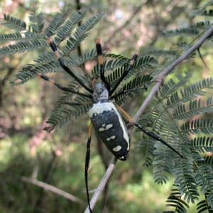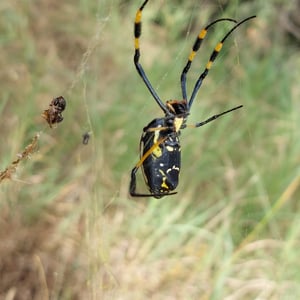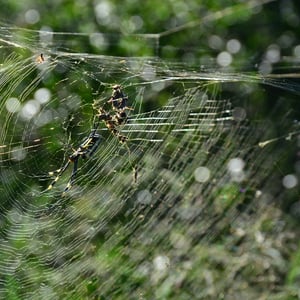 Trichonephila senegalensis, commonly known as the Senegal golden orb-weaver, is a species of large orb-weaving spider found in the West African region. The females of this species are known for their impressive size, with a body length of up to 5 centimeters and a leg span of over 15 centimeters. They construct intricate orb-shaped webs, which can reach up to one meter in diameter, using strong golden silk.