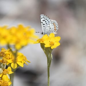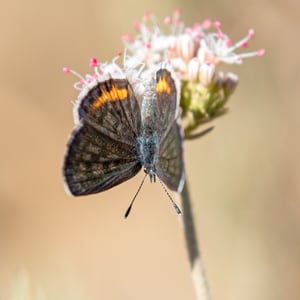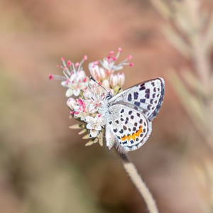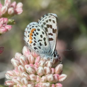 Euphilotes bernardino is a species of butterfly commonly known as the Bernardino blue. It is found in the western United States, specifically in California. This small butterfly has a wingspan of about 1 inch and is characterized by its vibrant blue coloration with black and white markings. It is typically found in open grasslands and meadows, where it feeds on various flowering plants.