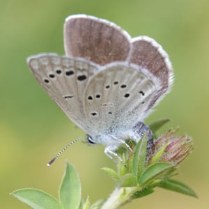 Glaucopsyche melanops, the black-eyed blue, is a butterfly of the family Lycaenidae. It is found in the western part of Southern Europe and North Africa. The length of the forewings is 11–13 mm. The butterfly flies from May to July depending on the location. The larvae feed on Fabaceae species.