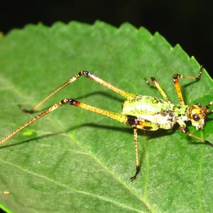 Phaneroptera nigroantennata is a species of insect belonging to the family Tettigoniidae. It is commonly known as the black-antennaed bush cricket. This insect is characterized by its dark-colored body and distinctive black antennae. It is primarily found in forested areas, where it feeds on plant matter and produces a characteristic buzzing sound during mating season.