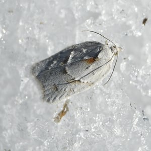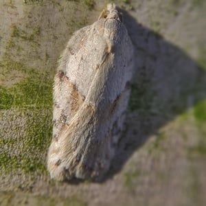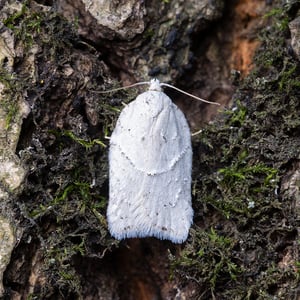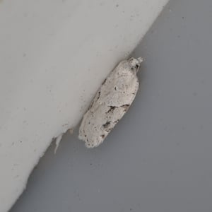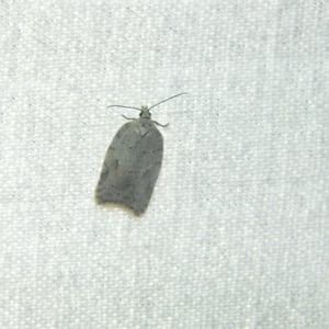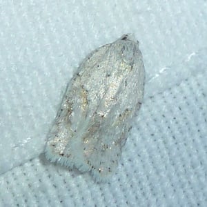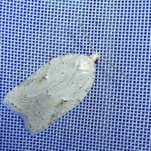 Acleris logiana, the black-headed birch leaffolder moth or grey birch button, is a moth of the family Tortricidae. It was described by Carl Alexander Clerck in 1759. It is found in most of Europe, except Ireland, Portugal, most of the Balkan Peninsula and Ukraine. It is also found in North America, the Russian Far East, Korea and Japan. The wingspan is 18–22 mm. The forewings are whitish or pale grey, dotted with tufts of raised dusky scales. Adults are on wing from September to April after overwintering. The larvae feed on Betula species. They feed between the spun leaves of their host plant.
