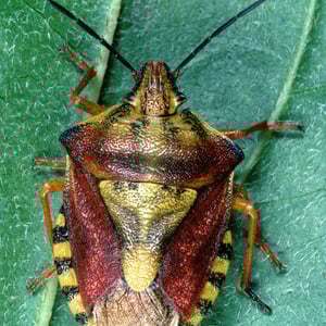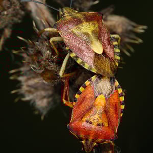These shield bugs live in meadows, roadsides, edges of forests and gardens.