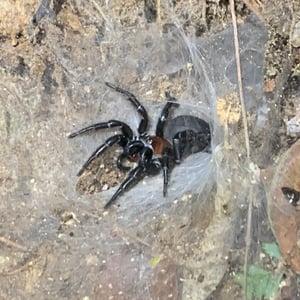 Porrhothele antipodiana, the black tunnelweb spider, is a spider found throughout much of New Zealand and the Chatham Islands in bush and gardens and is one of New Zealand's most researched spiders. It is related to tarantulas, and is a harmless relative of the venomous Australian funnel-web spider.