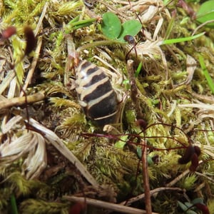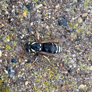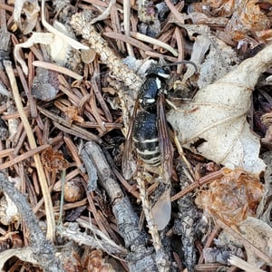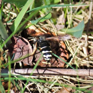 Vespula consobrina is a species of social wasp commonly found in North America. It is known for its distinctive black and yellow coloration, similar to other wasp species. These insects build large paper nests, often underground or in cavities, and are known to be aggressive when their nests are disturbed. Vespula consobrina primarily feeds on nectar and other sugary substances, but also scavenges for protein-rich food sources.