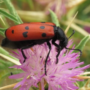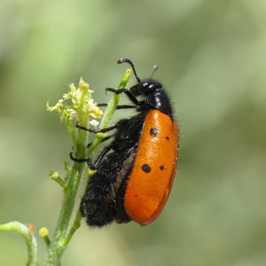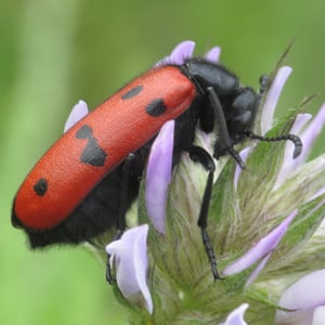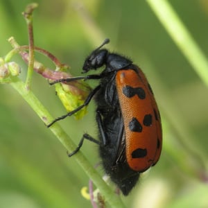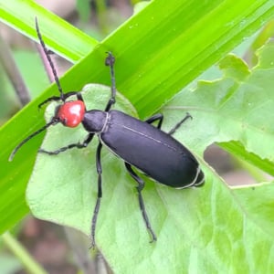 Meloidae, commonly known as blister beetles, are a family of insects belonging to the order Coleoptera. They are characterized by their elongated bodies and soft elytra (wing covers). Blister beetles produce a chemical called cantharidin, which can cause blisters and irritation when it comes into contact with human skin. They are often found in fields and gardens, feeding on plants and occasionally on other insects.