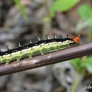 The larvae are black, with a bright orange head and strong spines along the white sides. They feed on Urticaceae (Urticastrum, Urrera baccifera), while adults feed on rotting fruits. Males of these butterflies are usually seen in large aggregations imbibing mineralized moisture.