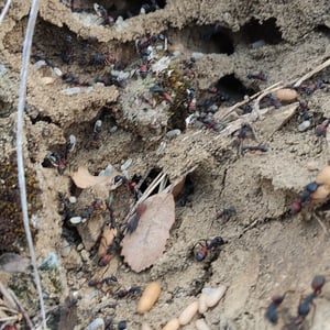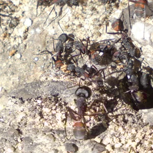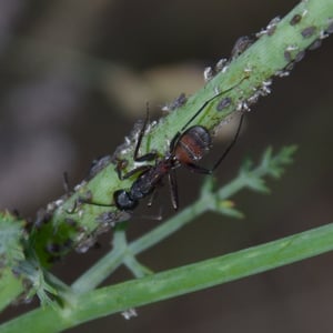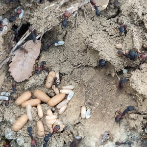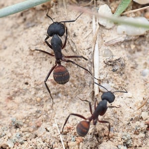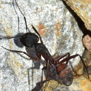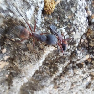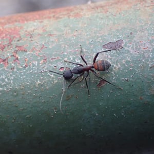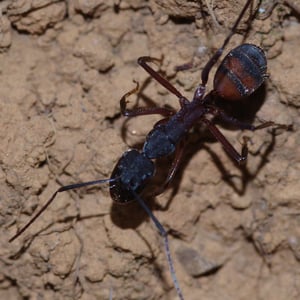 Camponotus cruentatus, commonly known as the red carpenter ant, is a species of large ant belonging to the genus Camponotus. These ants are typically reddish-brown in color and can grow up to 1.5 cm in length. They are known for their ability to excavate wood and create extensive galleries, making them important decomposers in forest ecosystems. Camponotus cruentatus colonies are typically found in dead or decaying wood, where they forage for food and tend to aphids for their honeydew.