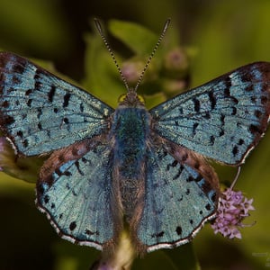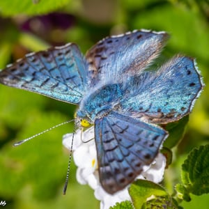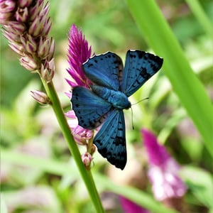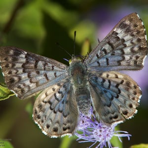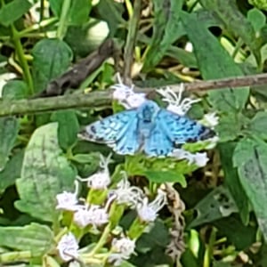 Lasaia sula, the blue metalmark, is a species of butterfly in the family Riodinidae that is native to North America. It ranges from the Lower Rio Grande Valley of Texas in the United States south to Honduras and inhabits subtropical forests, forest edges, and agricultural areas. The top of the wings is metallic blue while the undersides are checker spotted and grayish brown. The wingspan is 2.2 to 3.2 cm. Caterpillars feed on Albizia species.