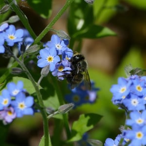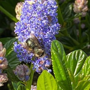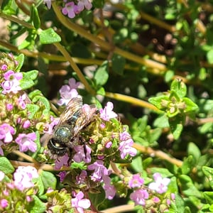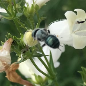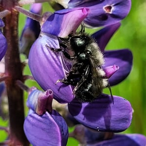 Osmia lignaria, commonly known as the blue orchard bee or mason bee, is a solitary bee species found in North America. They are known for their metallic blue-black coloration and robust build. These bees are important pollinators, particularly for fruit trees and orchard crops, making them valuable for agricultural purposes. Osmia lignaria constructs nests in pre-existing cavities, such as hollow plant stems or woodpecker holes, using mud or plant material to create individual cells for their eggs.