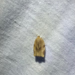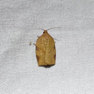 The wingspan is 16–28 mm. The forewings are orangish-yellow with an oblique brown median band broken by the ground color near the upper end. There is a narrow brown subapical patch at the costa, linked to the median band in the male, separated in the female. The hindwings are dark gray in the male and tan with a gray shade in the lower half in the female. The male is usually smaller and darker than the female.