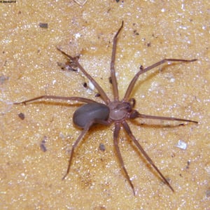 The brown recluse, Loxosceles reclusa, Sicariidae (formerly placed in a family "Loxoscelidae") is a recluse spider with necrotic venom. Similar to those of other recluse spiders, their bites sometimes require medical attention. The brown recluse is one of three spiders in North America with medically significant venom, the others being the black widow and the Chilean recluse. Brown recluse spiders are usually between 6 and 20 mm, but may grow larger. While typically light to medium brown, they range in color from whitish to dark brown or blackish gray. The cephalothorax and abdomen are not necessarily the same color. These spiders usually have markings on the dorsal side of their cephalothorax, with a black line coming from it that looks like a violin with the neck of the violin pointing to the rear of the spider, resulting in the nicknames fiddleback spider, brown fiddler, or violin spider.
