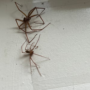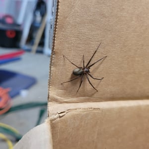 Brown recluse spiders build asymmetrical (irregular) webs that frequently include a shelter consisting of disorderly threads. They frequently build their webs in woodpiles and sheds, closets, garages, plenum spaces, cellars, and other places that are dry and generally undisturbed. When dwelling in human residences they seem to favor cardboard, possibly because it mimics the rotting tree bark which they inhabit naturally. Human-recluse contact often occurs when such isolated spaces are disturbed and the spider feels threatened. Unlike most web weavers, they leave these lairs at night to hunt. Males move around more when hunting than the females, which tend to remain nearer to their webs.