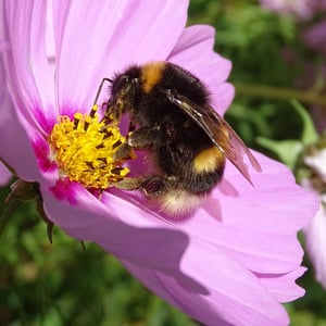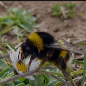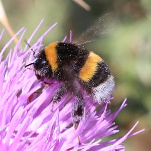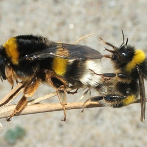 Bombus terrestris, the buff-tailed bumblebee or large earth bumblebee, is one of the most numerous bumblebee species in Europe. It is one of the main species used in greenhouse pollination, and so can be found in many countries and areas where it is not native, such as Tasmania. Moreover, it is a eusocial insect with an overlap of generations, a division of labor, and cooperative brood care. The queen is monandrous which means she mates with only one male. B. terrestris workers learn flower colors and forage efficiently.