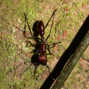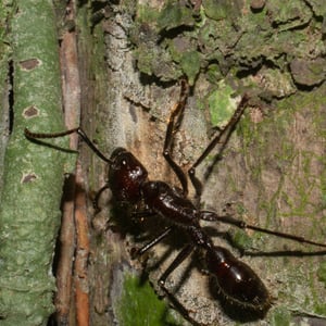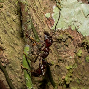 Paraponera clavata is a species of ant, commonly known as the bullet ant, named for its extremely painful sting. It inhabits humid lowland rainforests in Central and South America.