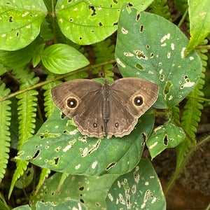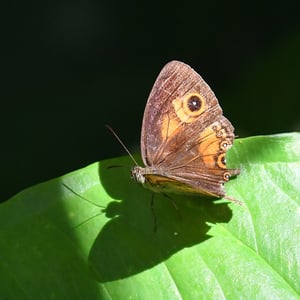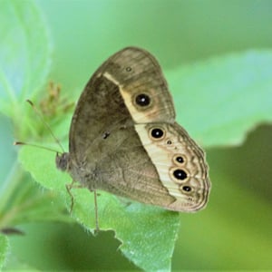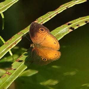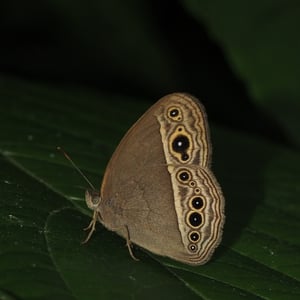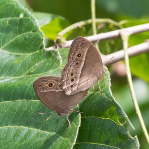 Mycalesis, the bushbrowns, are a genus of brush-footed butterflies. They are common in the warm regions from Central Asia to Australia, and have a high diversity in South Asia and the Wallacea. They are notably polymorphic, with wet- and dry-season forms differing in many species, especially as regards size and number of underwing eyespots. Mycalesis superficially resemble the species Orsotriaena medus, but can readily be identified by the number of spots.