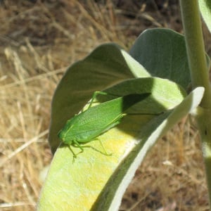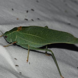 Microcentrum californicum, commonly known as the California katydid, is a species of insect belonging to the family Tettigoniidae. It is found in the western United States, particularly in California. This katydid is known for its vibrant green coloration and long, slender body, reaching lengths of up to 2 inches. It produces a distinctive buzzing sound during the night, making it a common sound in California's summer evenings.