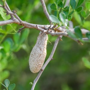 The cocoons of Eupackardia calleta are often used for ankle rattles and medicinal necklaces in certain American Indian ceremonies. The Yaqui Indians in Arizona and Mexico for example, call these rattles "tenabares", or "tenevoim". They are made in pairs and worn around the ankles or on both lower legs.