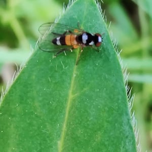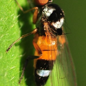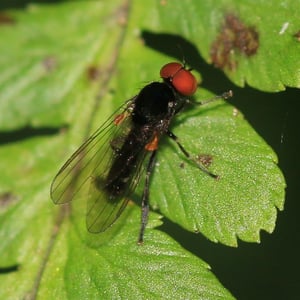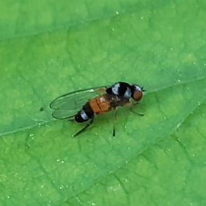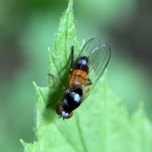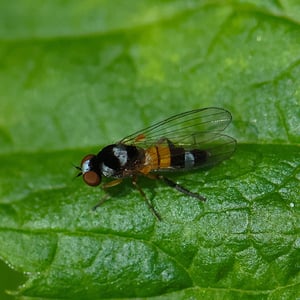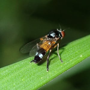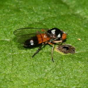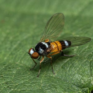 Callomyia amoena is a small insect belonging to the family Callomyiidae. It is characterized by its vibrant and striking coloration, with a metallic green body and iridescent wings. This species is commonly found in forested areas, where it feeds on decaying organic matter. Callomyia amoena is known for its unique courtship behavior, involving intricate aerial displays and mating dances.