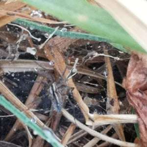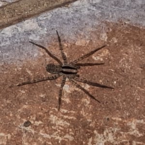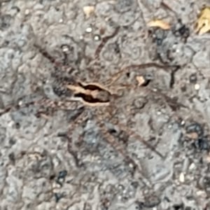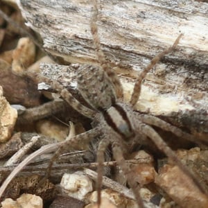 Camptocosa parallela is a species of wolf spider commonly found in North America. It is known for its distinctive parallel lines running down its body, which give it its name. These spiders are typically brown or gray in color and have a robust build. They are ground-dwelling predators, using their excellent eyesight and agility to hunt for prey.