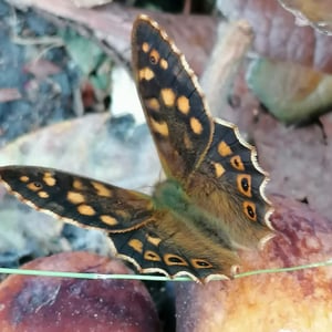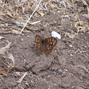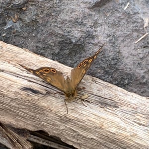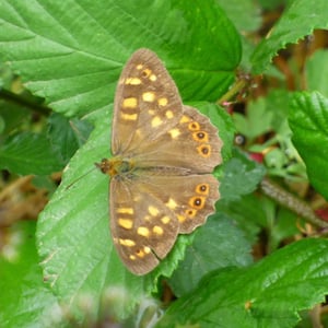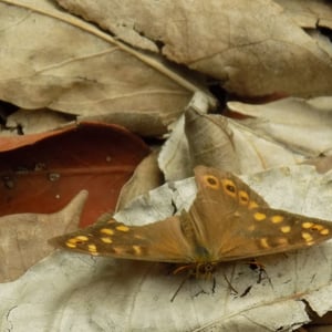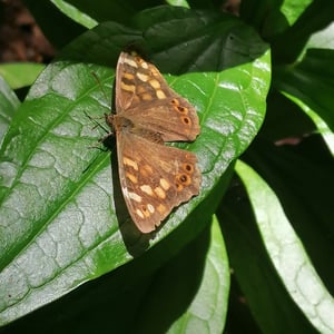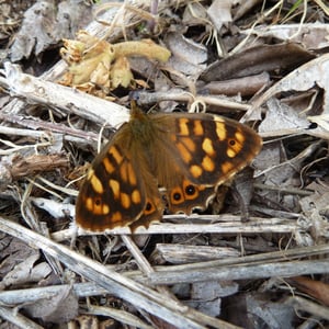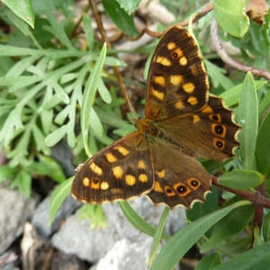 Pararge xiphioides, the Canary speckled wood, is a butterfly of the family Nymphalidae. It is found in the Canary Islands on La Gomera, La Palma, Tenerife and Gran Canaria. The wingspan is 40 –. Adults are on wing year-round. The larvae feed on various plants, including Brachypodium sylvaticum, Agrostis capillaris, Carex divulsa and Luzula forsteri. It is closely related to the species Pararge aegeria. differing thus xiphioides Stgr. (45a), from the Canary Islands, has the upperside darker on account of the smaller and more red-brown spots, while the underside of the hindwing is lighter, less marmorated and provided with a distinct median band, the costal part of which is shaded with white.