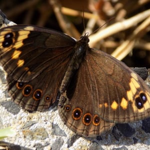 Dira clytus, the Cape autumn widow, is a butterfly of the family Nymphalidae. It is found in South Africa. The wingspan is 45–55 mm. Adults of ssp. clytus are on wing from late February to April and of ssp. eurina from late February to late March. There is one generation per year. The larvae feed on various Poaceae species, including Ehrharta erecta, Pennisetum clandestinum, Stipa dregeana, Panicum deustrum, Stenotaphrum glabrum and Stenotaphrum secundatum.