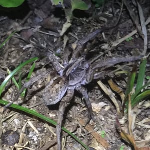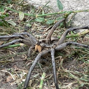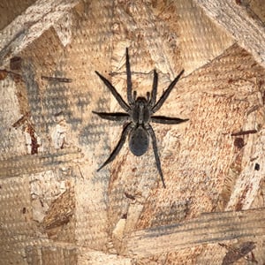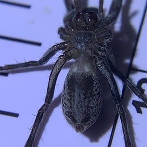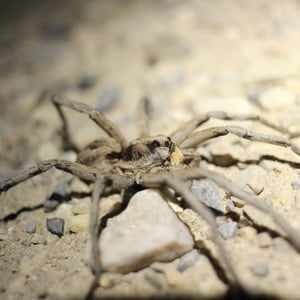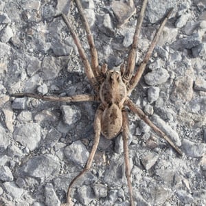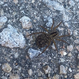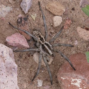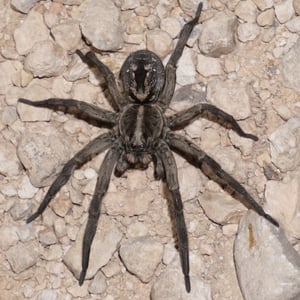Hogna carolinensis, commonly known as the Carolina wolf spider, is found across North America. It is the largest of the wolf spiders in North America, typically measuring at 18–20 mm for males and 22–35 mm for females. The Carolina wolf spider is mottled brown with a dark underside. Males have orange coloration on their sides. They live in either self-made burrows or ones they find. Like all wolf spiders, H. carolinensis does not make a web to catch prey. They hunt by ambushing prey from their burrows. These spiders are particularly known for the females carrying their egg sacs on their bodies during the incubation period. The Carolina wolf spider also has a unique type of venom that both paralyzes their prey and helps prevent microbes from their prey infecting them. H. carolinensis is able to thermoregulate quite well. This is particularly important for animals that inhabit desert ecosystems or other locations with large temperature swings.