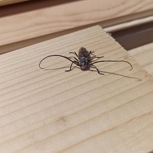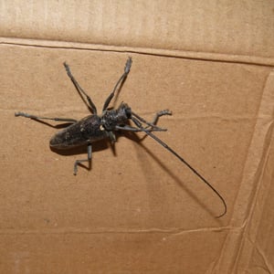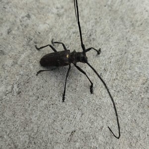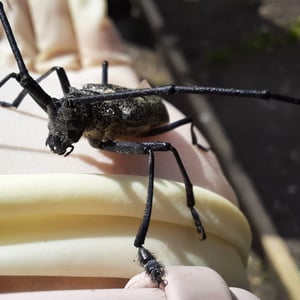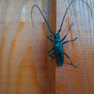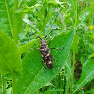 Monochamus sartor, commonly known as the Sartor longhorn beetle, is a species of insect belonging to the family Cerambycidae. It is characterized by its elongated body, measuring around 20-30 millimeters in length, and its distinctive long antennae. The Sartor longhorn beetle is known for its striking black and white coloration, with black elytra and white markings. This species is typically found in coniferous forests, where it feeds on the bark and wood of dead or dying trees.