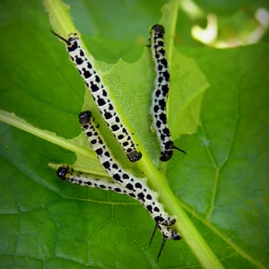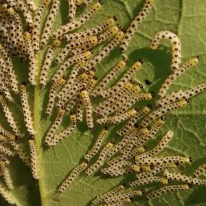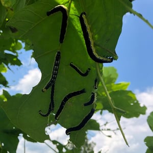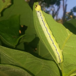 Translucent, milky-white, green, or yellowish eggs are oval, being about 0.5 mm in diameter. Eggs are deposited in masses of 100-1000 eggs on the undersurface of leaves, while smaller masses are deposited onto branches on the catalpa tree. Eggs incubate and hatch five to seven days after oviposition.