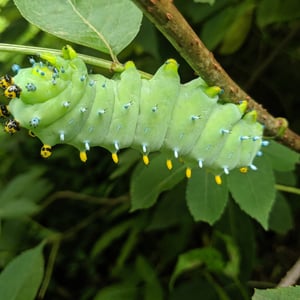 Pests of the moths have become a significant problem. Parasitoids, such as some species of wasps and flies, lay their eggs in or on the young caterpillars. The eggs then hatch into larvae, which consume the internal organs and muscles of the caterpillars. The parasitoid releases chemicals that override the regulatory mechanisms of the caterpillar. Once the parasitoid has grown enough, it induces the caterpillar to pupate. Once the caterpillars pupate, the parasitoid larvae themselves pupate, killing the cecropia pupa. Squirrels also consume the pupae of cecropia moths, which can decrease the populations significantly. Pruning of trees and leaving outdoor lights on at night can also be detrimental to cecropia moths. Compsilura concinnata, introduced to North America to control invasive European spongy moths, is a particular threat to the native North American cecropia moth.