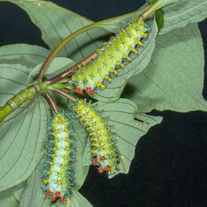 In August 2012, a cecropia moth caterpillar was accidentally imported from Ontario to St. John's, Newfoundland, via a shipment of dogwood shrubs. Cecropia are not native to the latter province. Within 48 hours of its arrival the caterpillar began spinning a cocoon; it wintered at the federal Agriculture and Agri-Food research facility in St. John's, whence it had been transferred by the owner of the importing company. On May 29, 2013, the predominantly black and red female moth — named Georgina by the facility's staff — emerged from her cocoon with a roughly 20 cm wingspan. After allowing Georgina to complete her natural lifespan, researchers planned to pin and preserve her for future study.