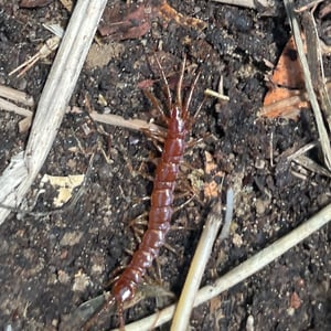 Centipedes have a rounded or flattened head, bearing a pair of antennae at the forward margin. They have a pair of elongated mandibles, and two pairs of maxillae. The first pair of maxillae form the lower lip, and bear short palps. The first pair of limbs stretch forward from the body to cover the remainder of the mouth. These limbs, or maxillipeds, end in sharp claws and include venom glands that help the animal to kill or paralyze its prey. Many species of centipedes lack eyes, but some possess a variable number of ocelli, which are sometimes clustered together to form true compound eyes. However, these eyes are only capable of discerning light and dark, and have no true vision. In some species, the first pair of legs at the head end of the centipede acts as sense organs similar to antennae, but unlike the antennae of most other animals, theirs point backwards. Unusual sense organs found in some groups are the organs of Tömösváry. These are located at the base of the antennae, and consist of a disc-like structure with a central pore surrounded by sensory cells. They are probably used for sensing vibrations, and may even provide a sense of hearing. Forcipules are a unique feature found only in centipedes and in no other arthropods. The forcipules are modifications of the first pair of legs (the maxillipeds), forming a pincer-like appendage always found just behind the head. Forcipules are not true mouthparts, although they are used in the capture of prey items, injecting venom and holding onto captured prey. Venom glands run through a tube almost to the tip of each forcipule. Behind the head, the body consists of 15 or more segments. Most of the segments bear a single pair of legs, with the maxillipeds projecting forward from the first body segment, and the final two segments being small and legless. Each pair of legs is slightly longer than the pair immediately in front of it, ensuring that they do not overlap, so reducing the chance that they will collide with each other while moving swiftly. In extreme cases, the last pair of legs may be twice the length of the first pair. The final segment bears a telson and includes the openings of the reproductive organs. As predators, centipedes mainly use their antennae to seek out their prey. The digestive tract forms a simple tube, with digestive glands attached to the mouthparts. Like insects, centipedes breathe through a tracheal system, typically with a single opening, or spiracle, on each body segment. They excrete waste through a single pair of malpighian tubules. Scolopendra gigantea, also known as the Amazonian giant centipede, is the largest existing species of centipede, reaching over 30 cm in length. It is known to eat lizards, frogs, birds, mice, and even bats, catching them in midflight, as well as rodents and spiders.