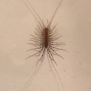 The differences between millipedes and centipedes are the subject of a common question from the general public. Both groups of myriapods share similarities, such as long, multi-segmented bodies, many legs, a single pair of antennae, and the presence of postantennal organs, but have many differences and distinct evolutionary histories, as the most recent common ancestor of centipedes and millipedes lived around 450 to 475 million years ago in the Silurian period. The head alone exemplifies the differences: millipedes have short, geniculate (elbowed) antennae for probing the substrate, a pair of robust mandibles and a single pair of maxillae fused into a lip; centipedes have long, threadlike antennae, a pair of small mandibles, two pairs of maxillae and a pair of large venom claws.