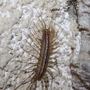 The Scutigeromorpha are anamorphic, reaching 15 leg-bearing segments in length. Also known as house centipedes, they are very fast creatures, and able to withstand falling at great speed: they reach up to 15 body lengths per second when dropped, surviving the fall. They are the only centipede group to retain their original compound eyes, within which a crystalline layer analogous to that seen in chelicerates and insects can be observed. They also bear long and multi-segmented antennae. Adaptation to a burrowing lifestyle has led to the degeneration of compound eyes in other orders; this feature is of great use in phylogenetic analysis. The group is the sole extant representative of the Notostigmophora, defined by having a single spiracle opening at the posterior of each dorsal plate. The more derived groups bear a plurality of spiracular openings on their sides, and are termed the Pleurostigmophora. Some even have several unpaired spiracles that can be found along the mid-dorsal line and closer to their posterior section of tergites. There are three families: Pselliodidae, Scutigeridae and Scutigerinidae. Pselliodidae includes just a few species in the genus Sphendononema (=Pselliodes), occurring in the Neotropics and tropical Africa. Scutigerinidae, composed of three species in the genus Scutigerina, is restricted to southern Africa and Madagascar. Most scutigeromorphs from other parts of the world belong to the Scutigeridae, which includes two subfamilies, the Scutigerinae and Thereuoneminae.